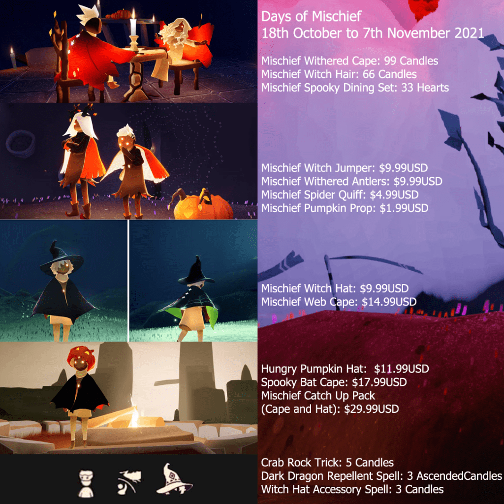 If you wish to buy the Mischief Bat Cape and Pumpkin Hat, you have to enter the Spider Web Entrance on the left and look for the Guide who sells them.