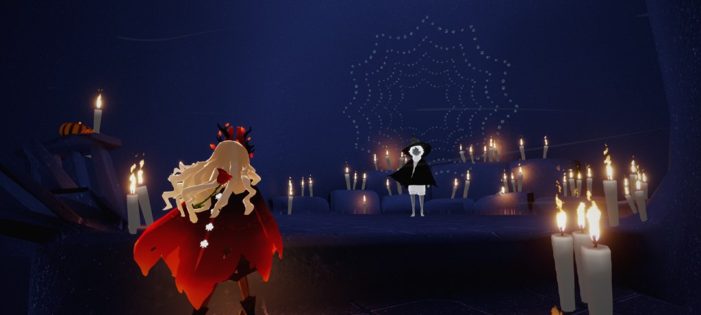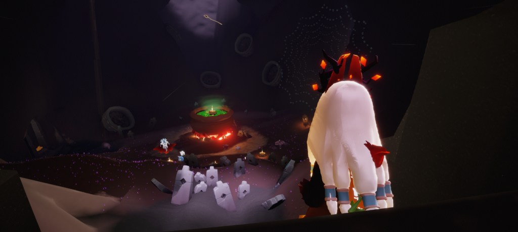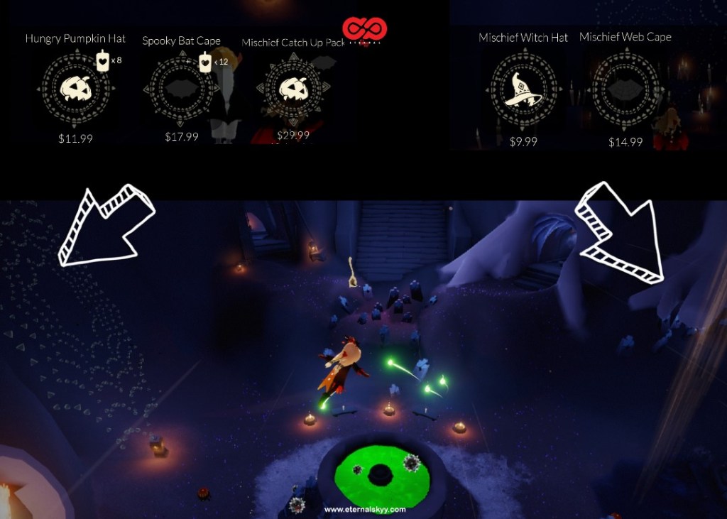If you wish to buy Mischief Witch Hat and Mischief Web Cape, you have to enter the cave through the stairs on the right and look for the Guide as shown in the photo above.