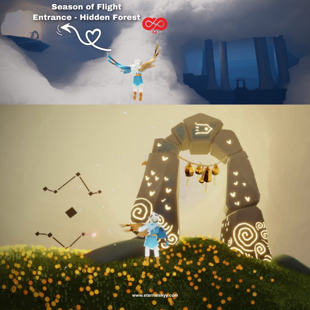 Season of Flight Location: Hidden Forest Entrance When entering the Hidden Forest, turn right and you will see the entrance. Light Whisperer Lively Navigator Talented Builder Tinkering Chimesmith SeasonAL cANDLES Share this: Click to share on X (Opens in new window) X Click to share on Facebook (Opens in new window) Facebook Like Loading...